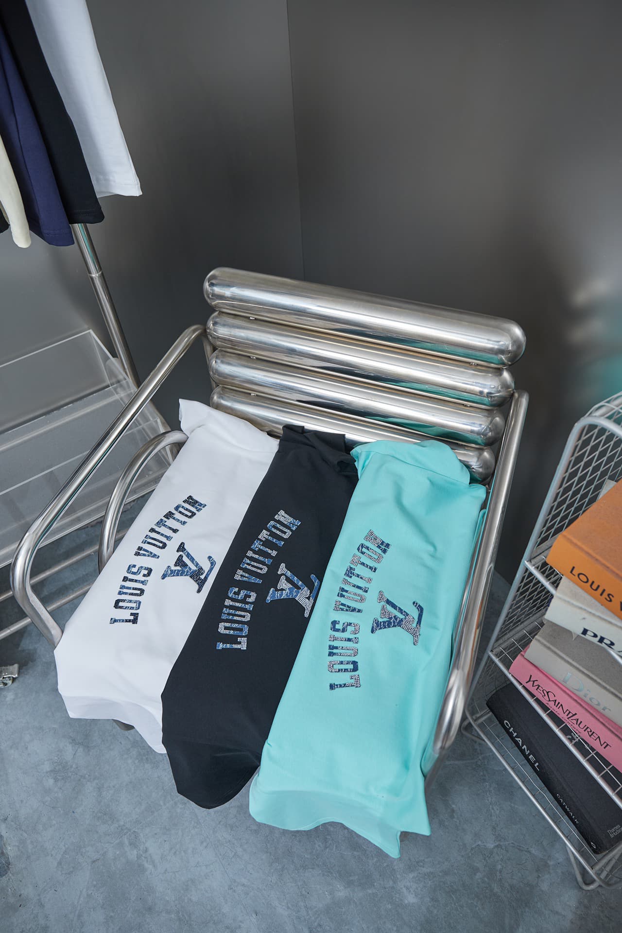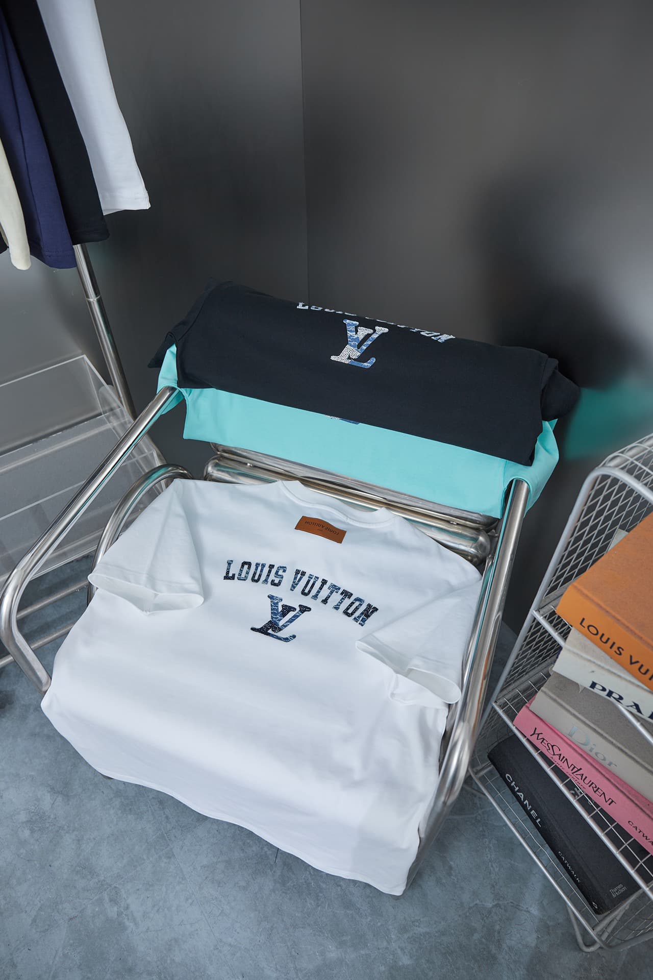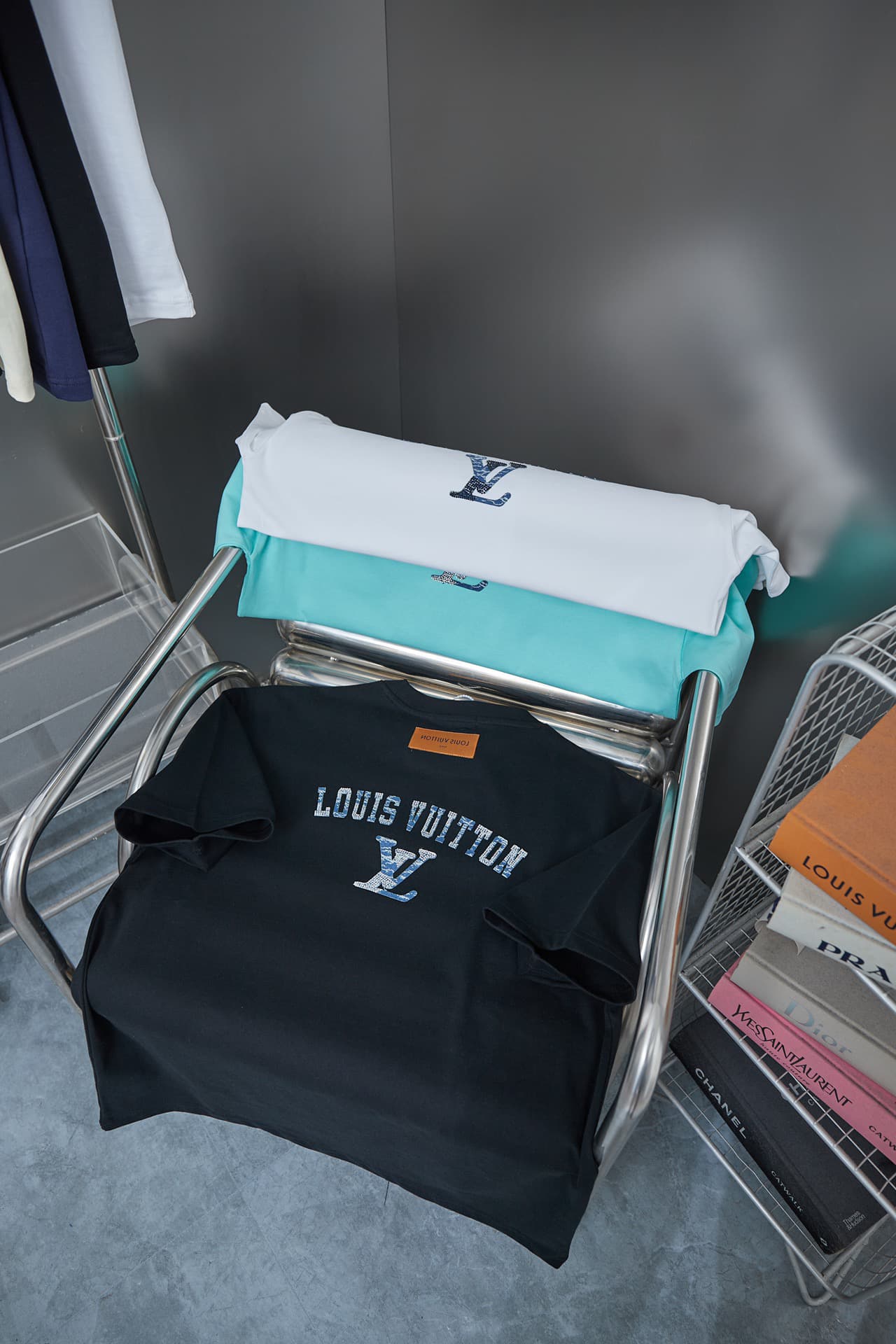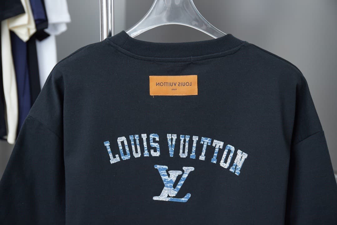 2025 New Denim Patch Rhinestone Letter T-shirt