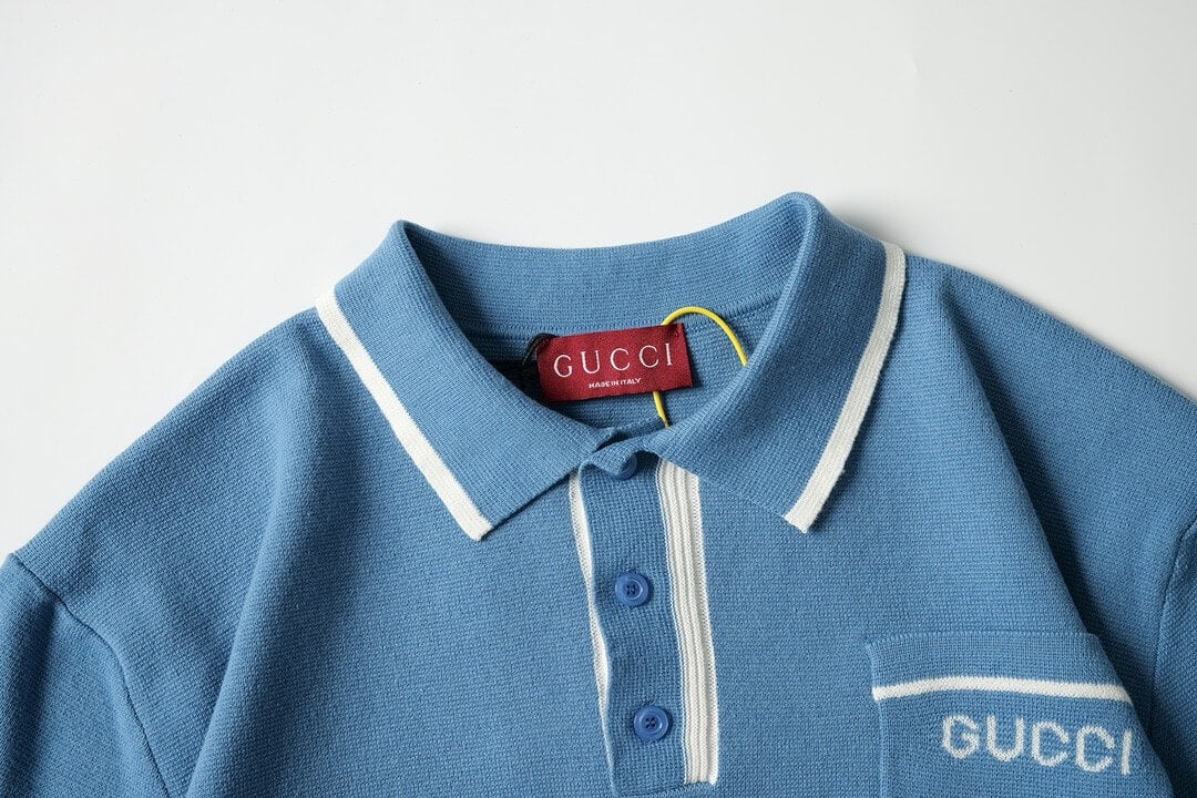 Blue Wool Polo Shirt