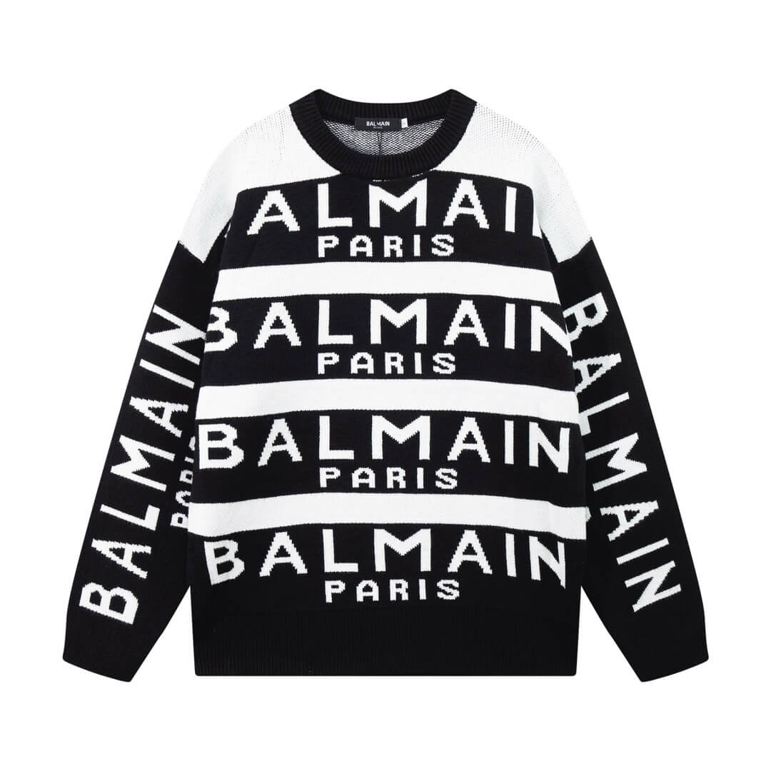 Full Print Striped Knit Wool Sweater