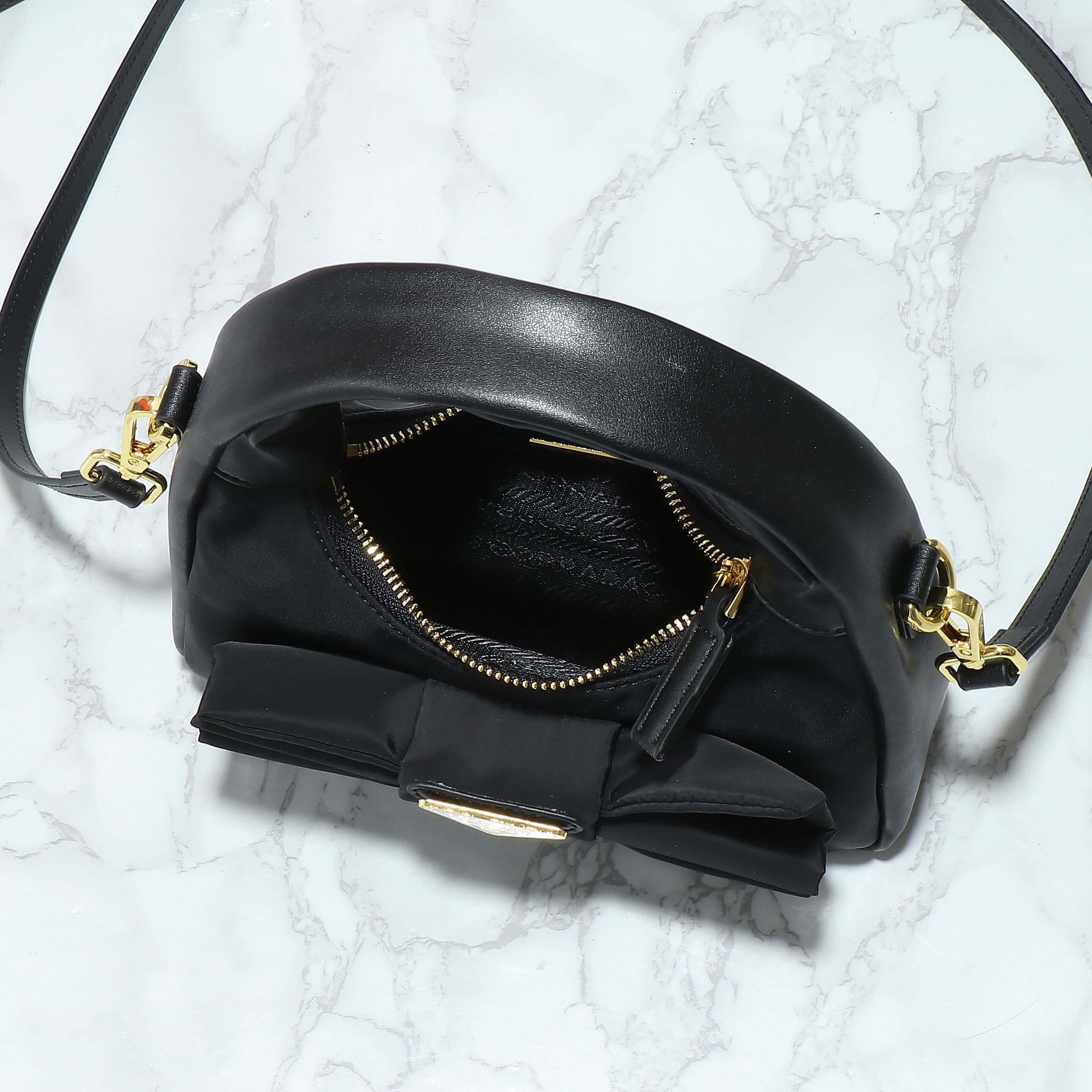 Nylon Paneled Leather Bow Armpit Shoulder Bag